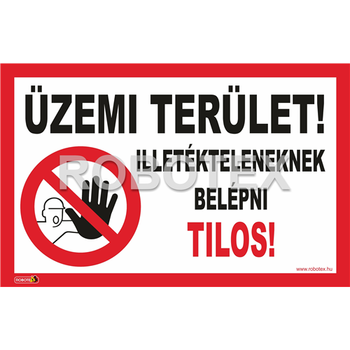 Az Üzemi terület! Illetékteleneknek belépni tilos! biztonsági tábla elengedhetetlen jelzés minden olyan ipari létesítményben, ahol a munkavégzés zavartalansága és a balesetvédelem kiemelt fontosságú. A 400×250 mm-es méret kiemelkedő láthatóságot biztosít, így a teherautó-sofőrök, látogatók és illetéktelen személyek számára már távolról, a telephely kapujánál egyértelműen jelzi a belépési korlátozást.